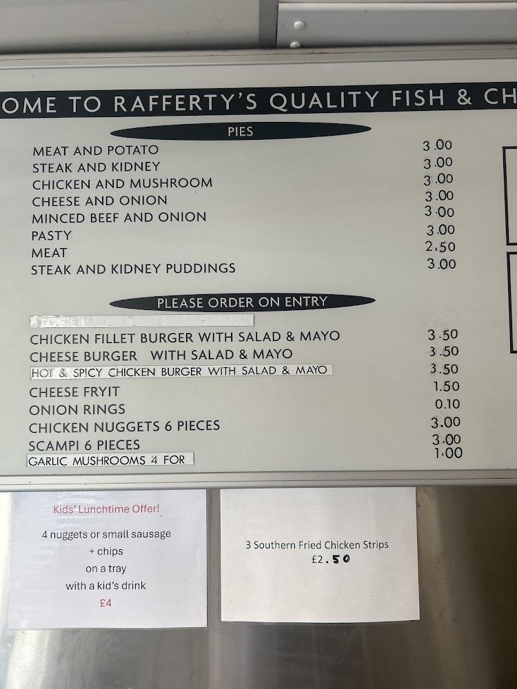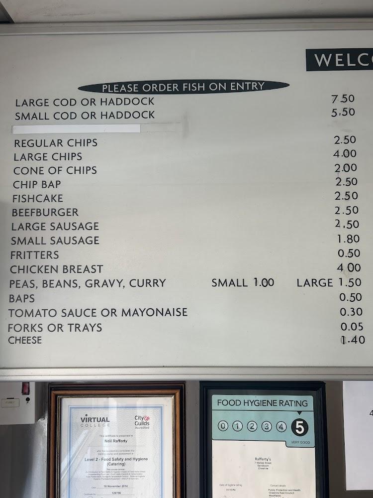 Situated in the heart of Sandbach, Rafferty's is uniquely positioned as the town's only traditional fish and chip shop. The shop's welcoming and casual environment makes it an ideal location for a quick bite or a relaxed family meal. Just a short walk from the local shops, Rafferty’s is accessible to everyone, with wheelchair-friendly facilities available. Open seven days a week, the shop is not just a regular takeaway; it offers a selection of meal options for lunch and dinner. With ample free street parking nearby, customers can easily swing by to grab a meal to go or take a seat to enjoy the lively atmosphere.